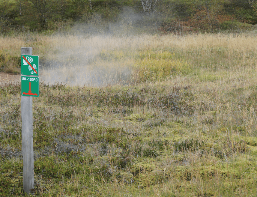 Dort ist es nicht nur heiß, sondern auch sehr nass und diese Kombination schafft beeindruckende Löcher im Boden, wo es herausdampft und schwefelig stinkt.
